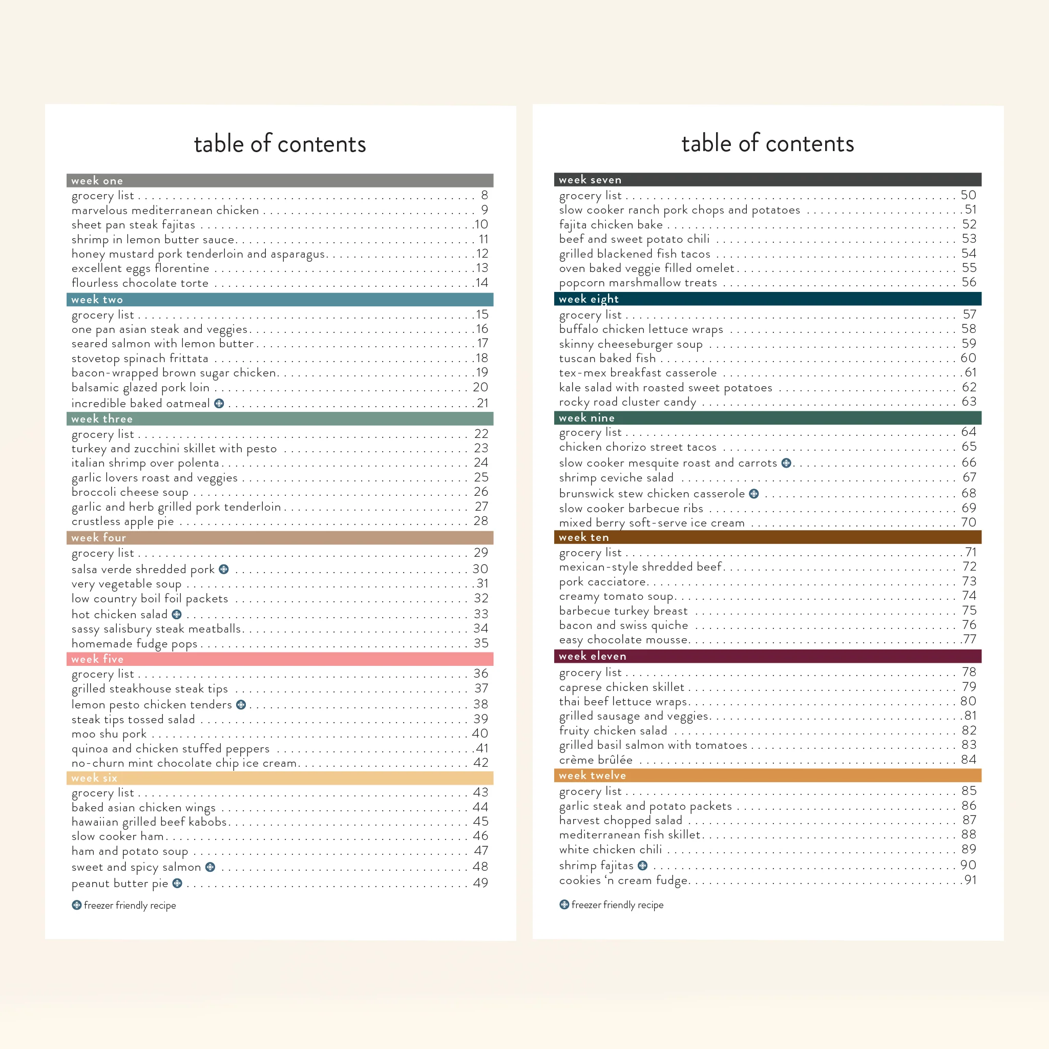 Each week has five amazing recipes plus a dessert.Ā Your crew will love theĀ steak tips tossed salad, fajita chicken bake,Ā beef & sweet potato chili, bacon-wrapped brown sugar chicken, italian shrimp over polenta, andĀ hot chicken salad. The dessert section is not to be overlooked either, with delicious treats that will satisfy your sweet tooth while keeping it gluten-free.