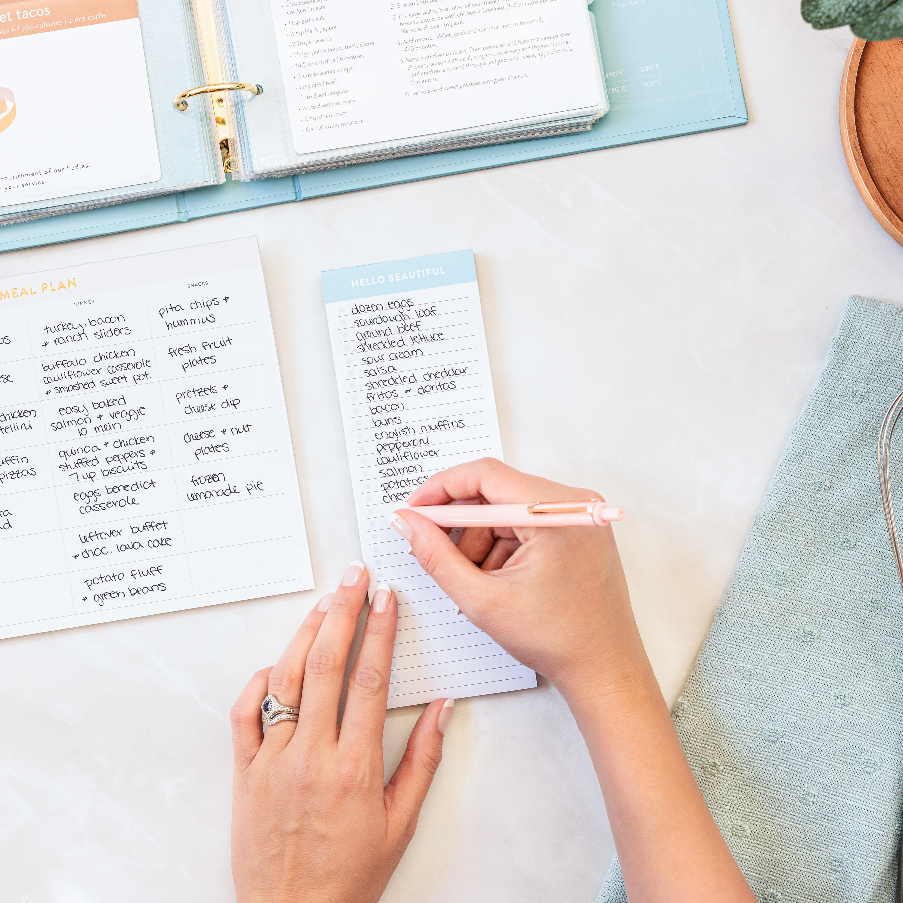 Our Grocery List Notepad is the perfect tool to transform your grocery shopping experience. With this pad, you can say goodbye to forgotten items like milk. And with the addition of our Fridge Meal Plan Pad, you can simplify your meal planning and shopping.