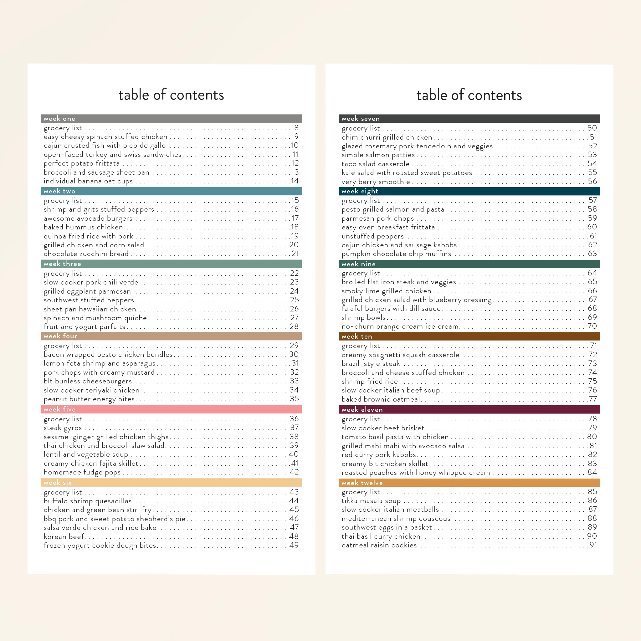 This Whole Foods Meal Plan makes feeding your family delicious and healthy meals easy! Most of the 72 recipes in this meal plan can be prepped in under 20 minutes to get wholesome meals on your table each night. Each recipe contains fresh ingredients that are minimally processed or not processed at all. Whole foods include fruits, vegetables, legumes, nuts, seeds, whole grains, meat, fish, and eggs.
