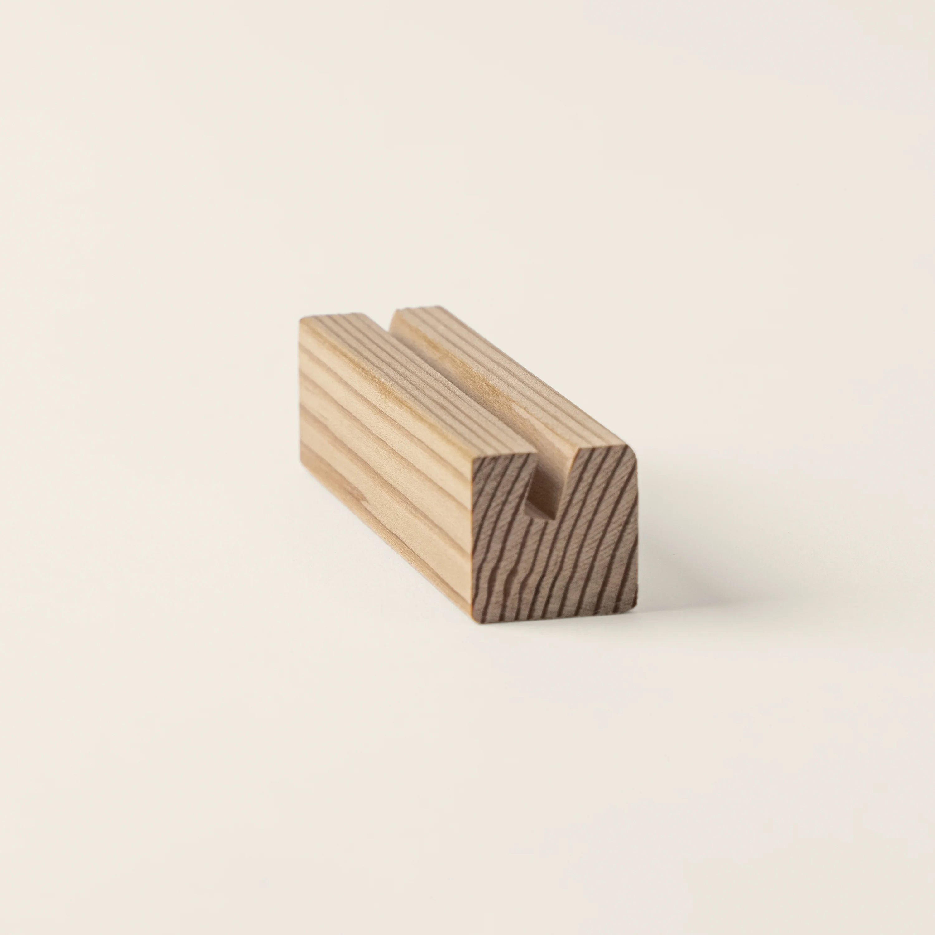 Cook or prep meals hands-free with this simple wood block recipe card holder. The slit is designed at an angle and diameter to hold all recipes cards and tabs included in any of the Menu Series Packs.